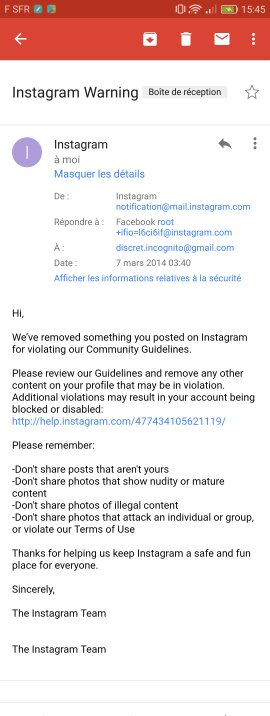 Je considère que c’est un bug car je n’ai pas commis d’infraction aux règles d’Instagram.