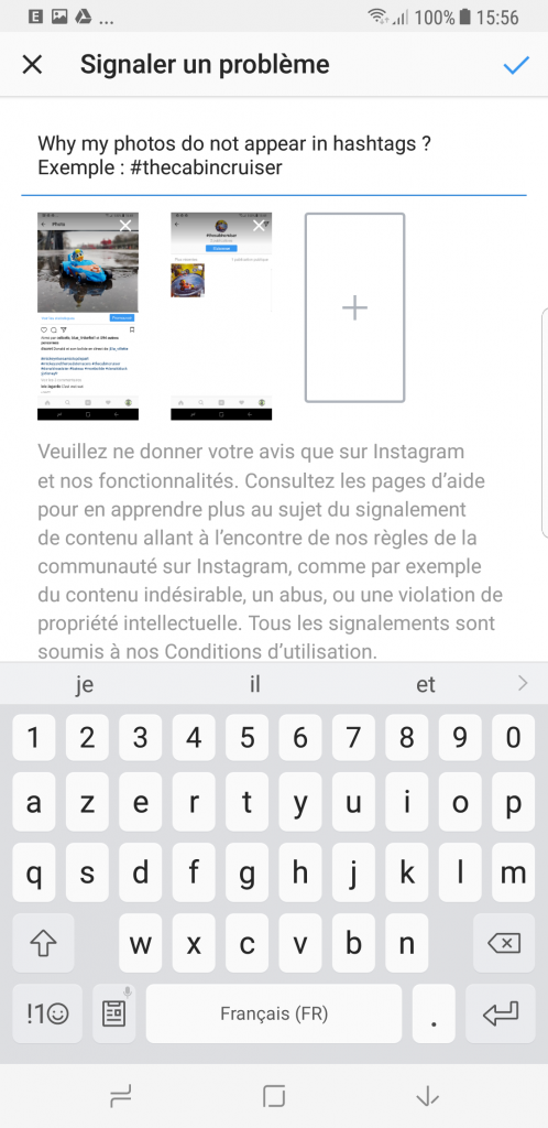 Avril 2017 : je me rend compte par hasard que mes photos ne sont plus visibles sur les hashtags publiques depuis juin 2015