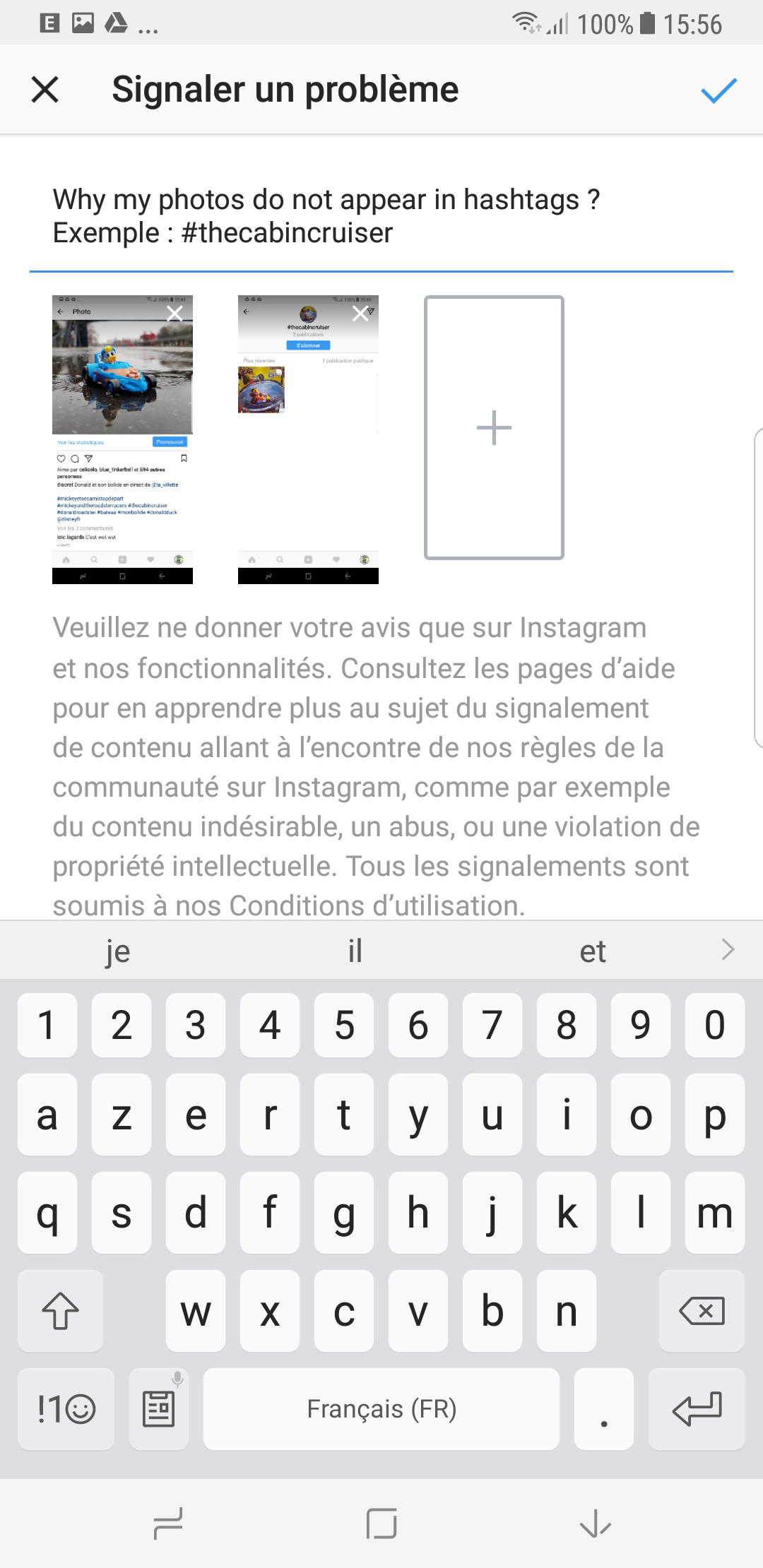 Je considère que c’est un bug car je n’ai pas commis d’infraction aux règles d’Instagram.