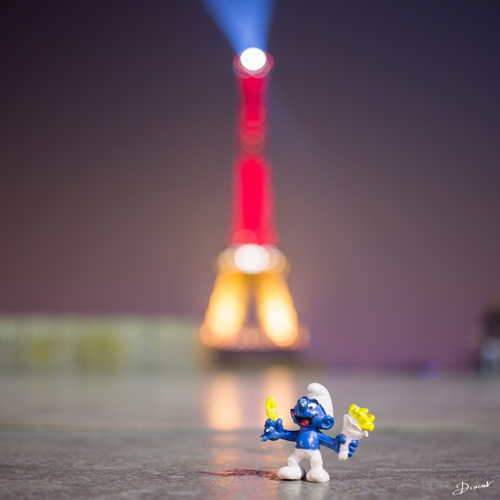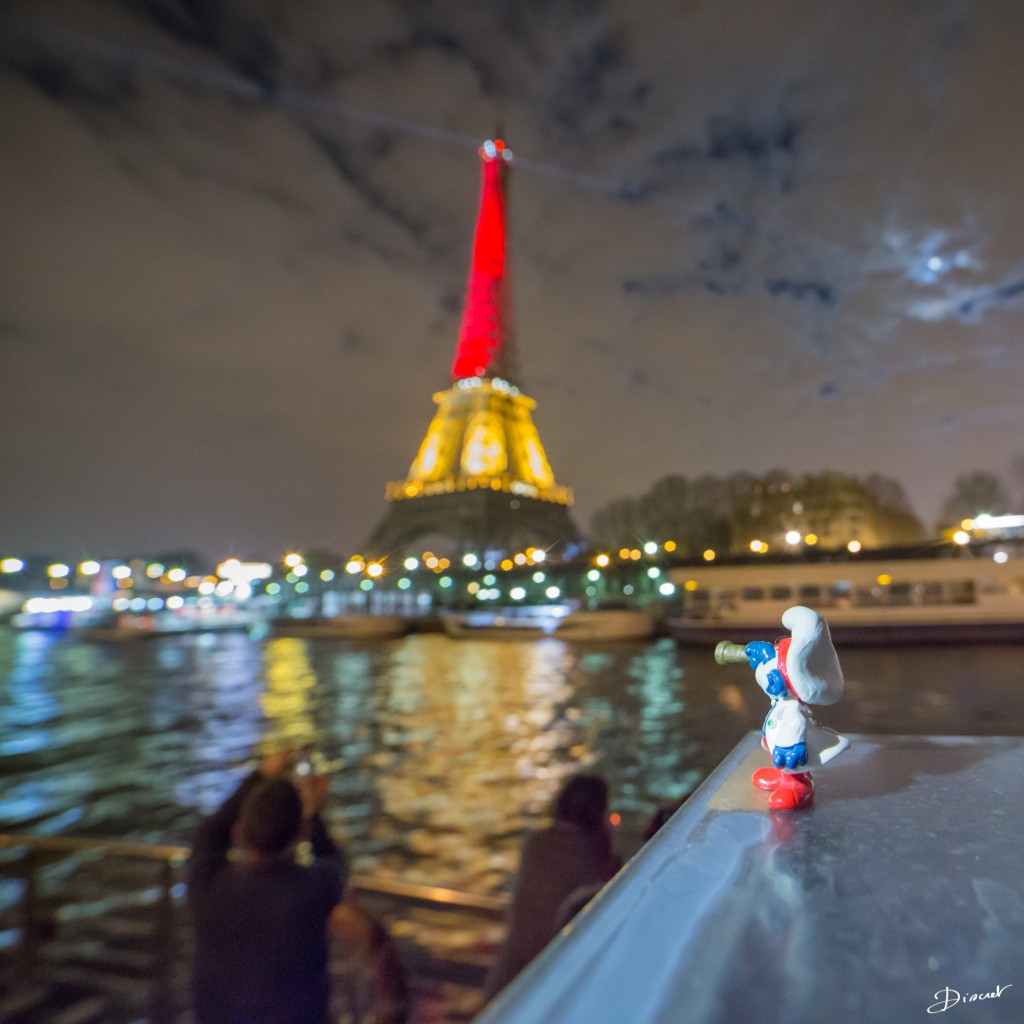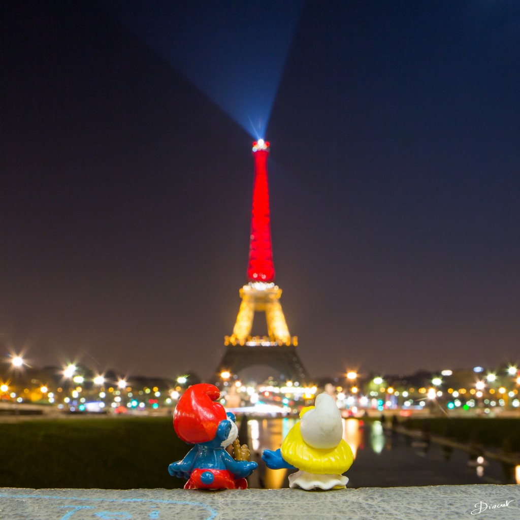 Touché par cette terrible nouvelle, j’ai spontanément sorti mes Schtroumpfs et mes figurines de Tintin, j’ai dévalé les quais en Vélib jusqu’à la grande dame illuminée aux couleurs de la Belgique.