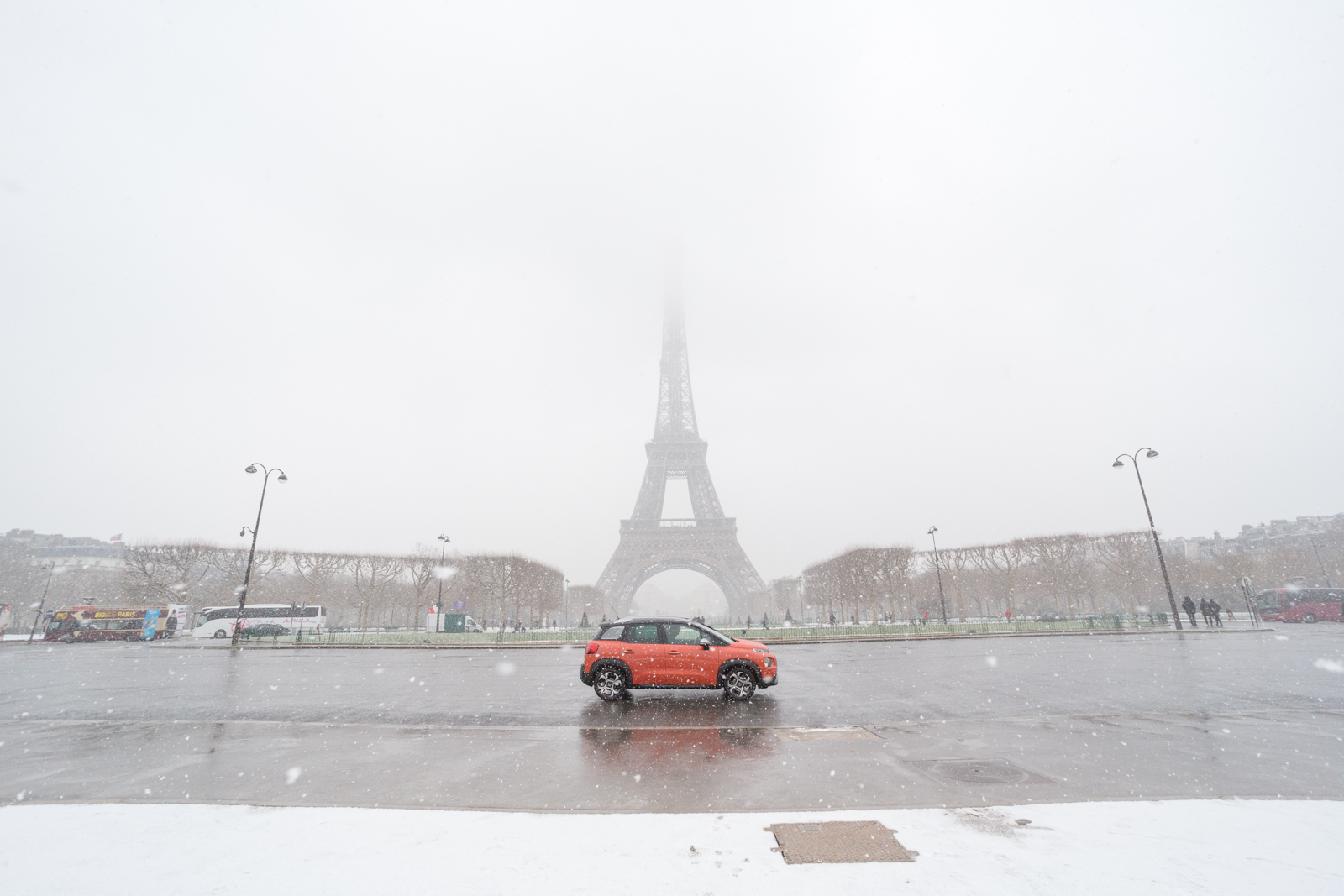 Il neige à Paris Lundi 5 février en Citroën C3 aircross